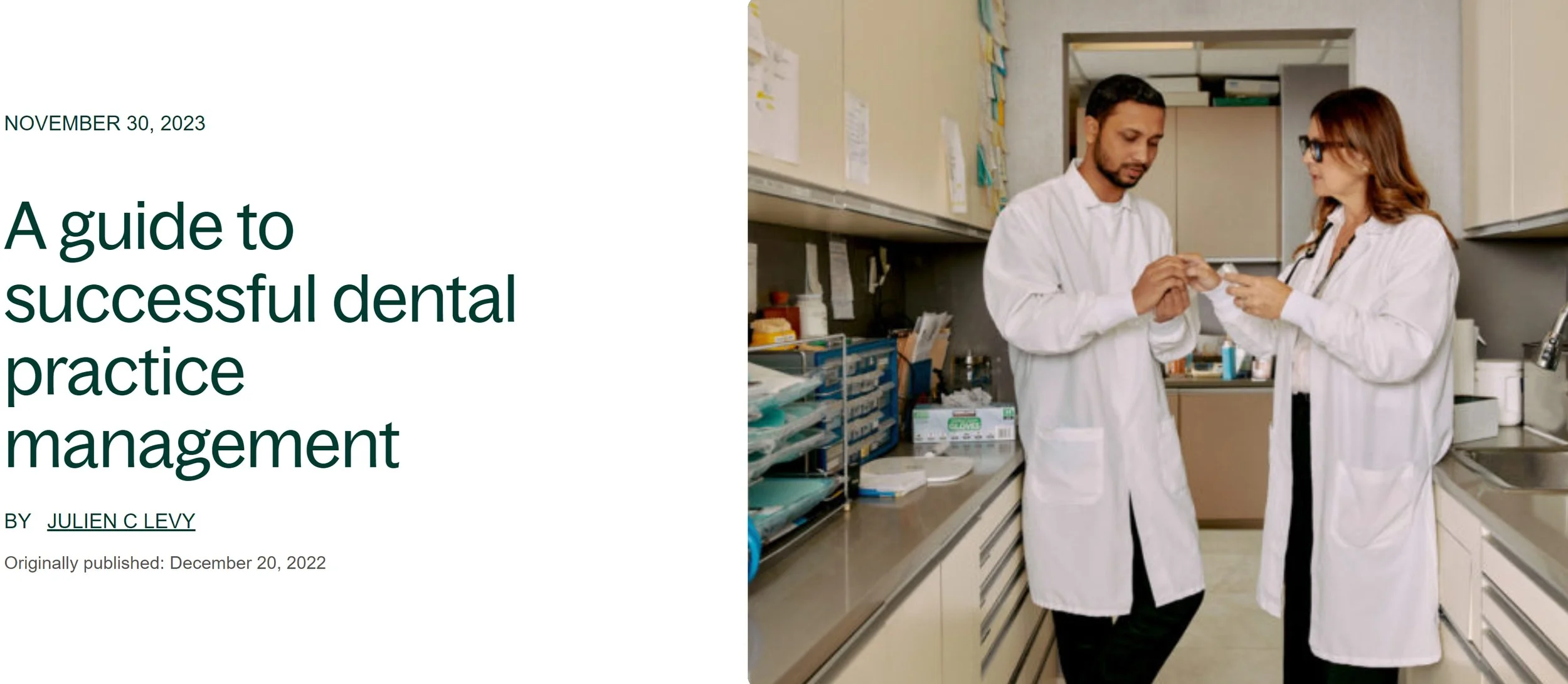 “…If you’re an aspiring dental practice manager, managing owner, or practitioner leading a team–you are the [orchestra’s] conductor, and it’s your job to unify every element under a single vision. Below you’ll find a list of best practices for managing a dental practice. These are not merely opinion, but formulations derived from statistical data we generated from our survey of over 600 participants, The Dandy Dental Survey: Patient Experience [E-Book written by Julien Levy] along with our reasoning. We’ll go over creating a welcoming office, streamlining communication, safeguarding patient data, the importance of leadership, flexible payment plans, marketing, and using new tech. Along with these, you’ll find suggestions and tips from experts in the field.”