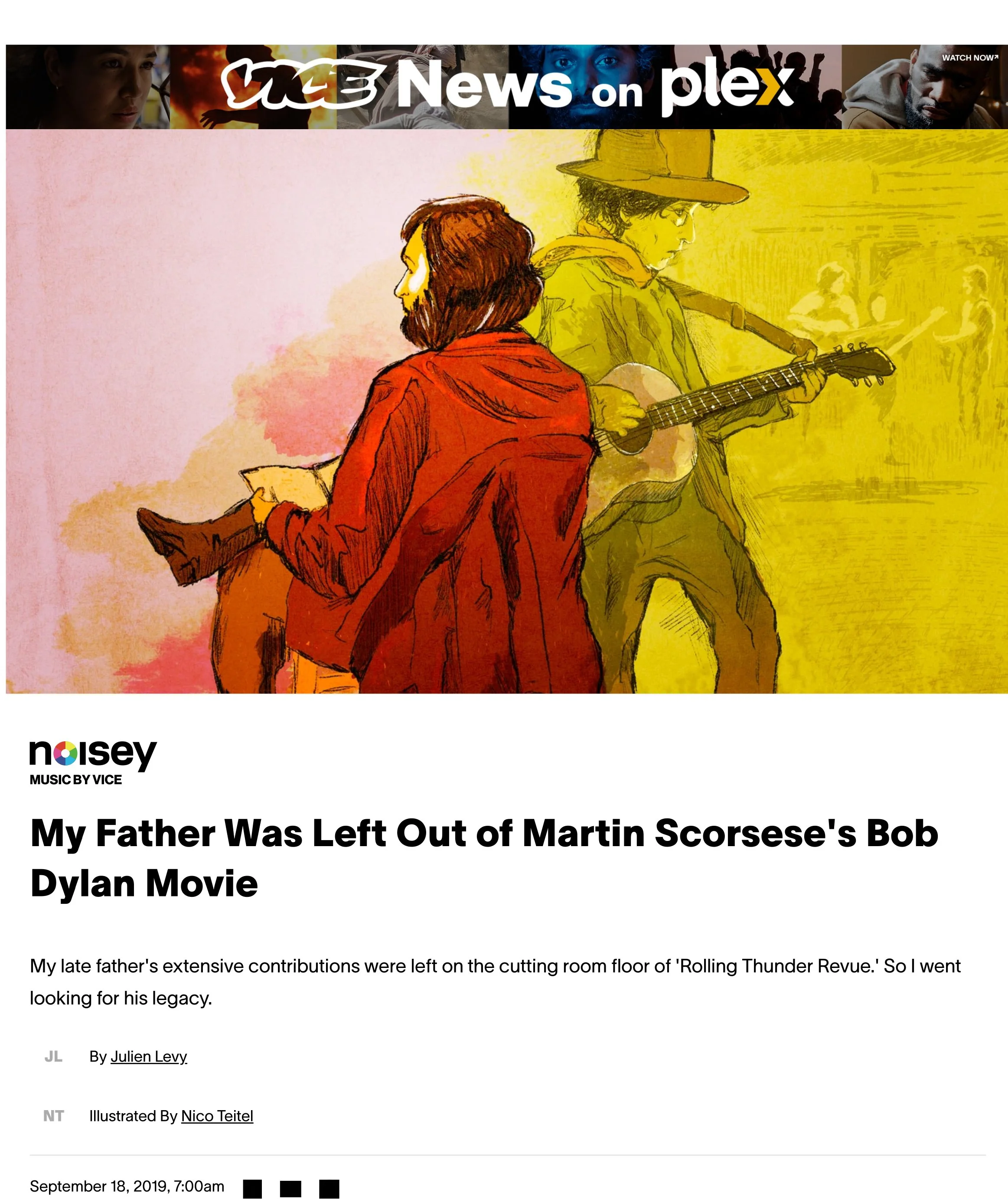 “…Marketed as ‘part documentary, part concert film, part fever dream,’ [Martin Scorsese’s film, Rolling Thunder] uses documentary's visual language to ostensibly tell the story of Dylan's legendary 1975 tour…but takes substantial liberties with the facts… the most bewildering feature of the film lies in what was left on the cutting room floor: Dylan's collaboration with [my father,] Jacques Levy, a relatively obscure New York avant-garde theater director whose contributions to Rolling Thunder, both as a songwriter and one of the tour's central creative architects, represent one of the most substantial partnerships in Dylan's career…culled together from as many primary sources as I could get my hands on and interviews with some key players from the tour, [this piece] is neither a biography nor a comprehensive chronicle of events, but simply the story of Rolling Thunder that the film declined to tell. It is also the story of my family.”